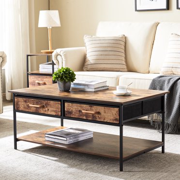 Wampat Farmhouse Coffee Table Large Rectangle Storage Center With 3 Drawers For Living Room Walmart Com